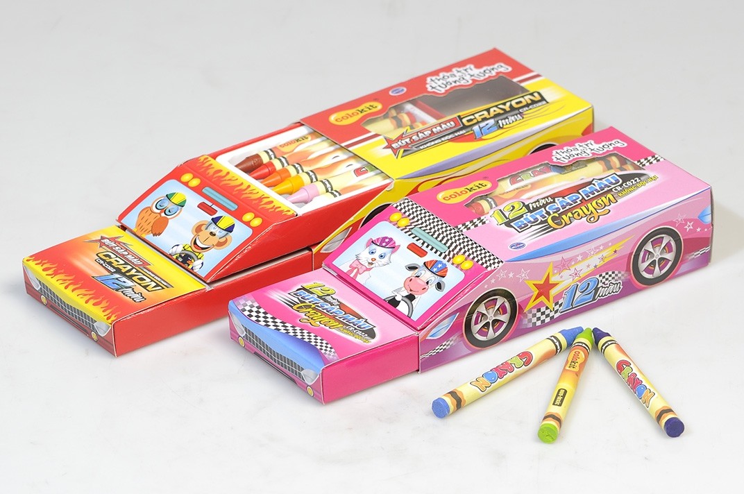 - Thân sáp hình trụ tròn, nhỏ vừa tay cầm của các bé.