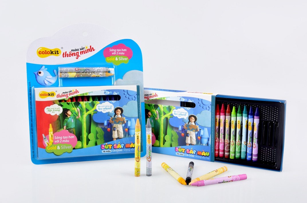 - Thân sáp hình trụ tròn, nhỏ vừa tay cầm của các bé.